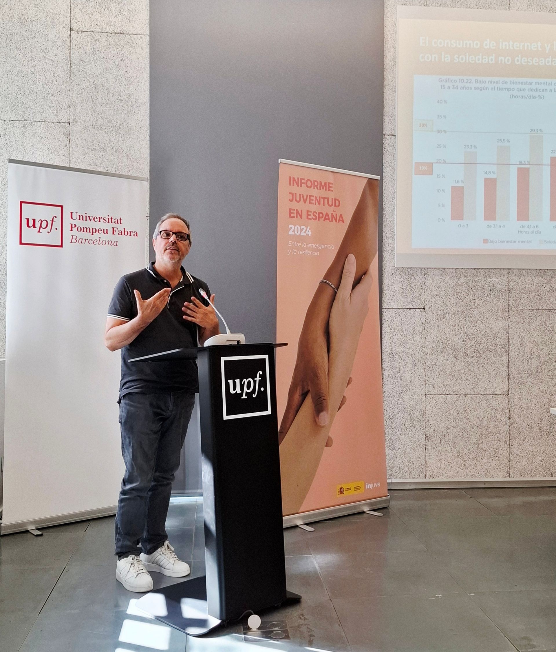 El 10 de Octubre, día mundial de la salud mental, se presentó en la Universidad Pompeu Fabra el reciente Informe 2024 sobre la Juventud en España. La jornada tuvo por objeto presentar y debatir los principales resultados del Informe y sus ejes temáticos. Presidieron la jornada Margarita Guerrero (directora general del INJUVE), Laura Lobato (directora del Observatorio de la Juventud de España), y Carles Feixa (director científico del Informe). Miembros de ARKS (Marga Mari-Klose, Sandra Escapa, Albert Julià y Pedro Gallo) tuvieron la oportunidad de presentar el capítulo: Salud y malestar mental en la juventud. La jornada incluyó la visión internacional con la participación de investigadores sobre juventud de otros países, un debate desde la política, y una relevante perspectiva y voz de los/las jóvenes.