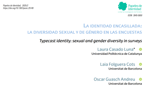 Laura Casado, Laia Folguera y Oscar Guasch publican en la revista Papeles de Identidad, y apuntan que la multiplicidad de formas de pensar la identidad de género problematiza los consensos existentes sobre la categorización de las preguntas en las encuestas. En el ámbito académico, existen debates sobre la forma de 'medir' el sexo y el género en las encuestas, así como sobre las directrices y 'códigos de buenas prácticas' emitidos por instituciones para guiar la categorización de la diversidad sexual y de género. Este articulo examina el grado y las modalidades de implementación de estos documentos oficiales y problematiza la complejidad técnica, teórica y política de la medición de la identidad en un marco 'encasillado' y limitado. Los resultados obtenidos evidencian divergencias de opinión en torno a la necesidad de implementar encuestas inclusivas observándose diferencias por edad, identidad de género y orientación sexual.