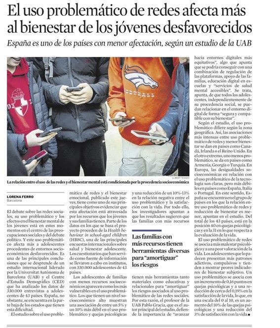 Publicación en el World Happiness Report, 2026: "Problematic social media use and adolescent wellbeing: the role of family socioeconomic status across 43 countries"